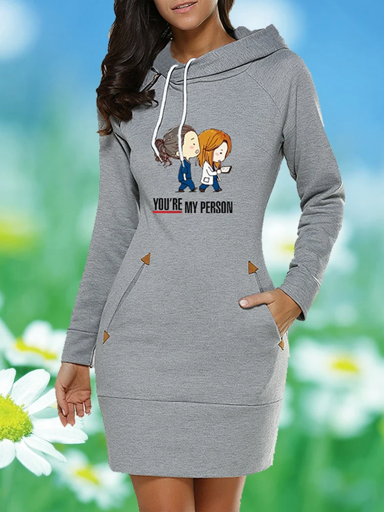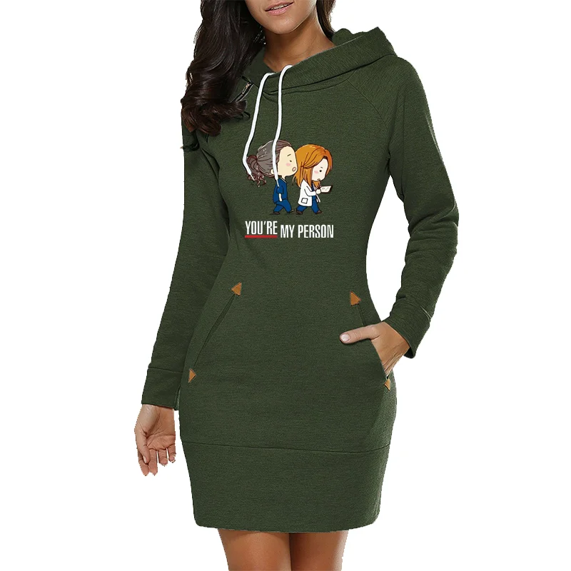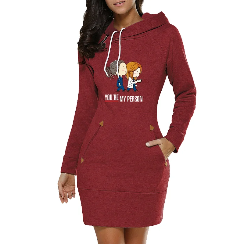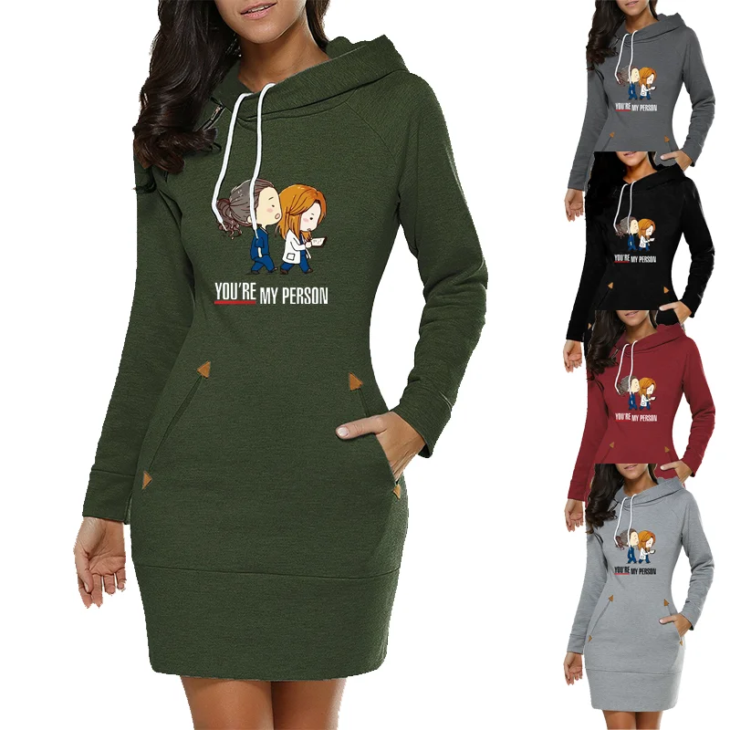 Biquinis segredo outono inverno feminino longo hoodies camisolas bonito impresso vestido de manga comprida com capuz com cordão pulôver vestidos