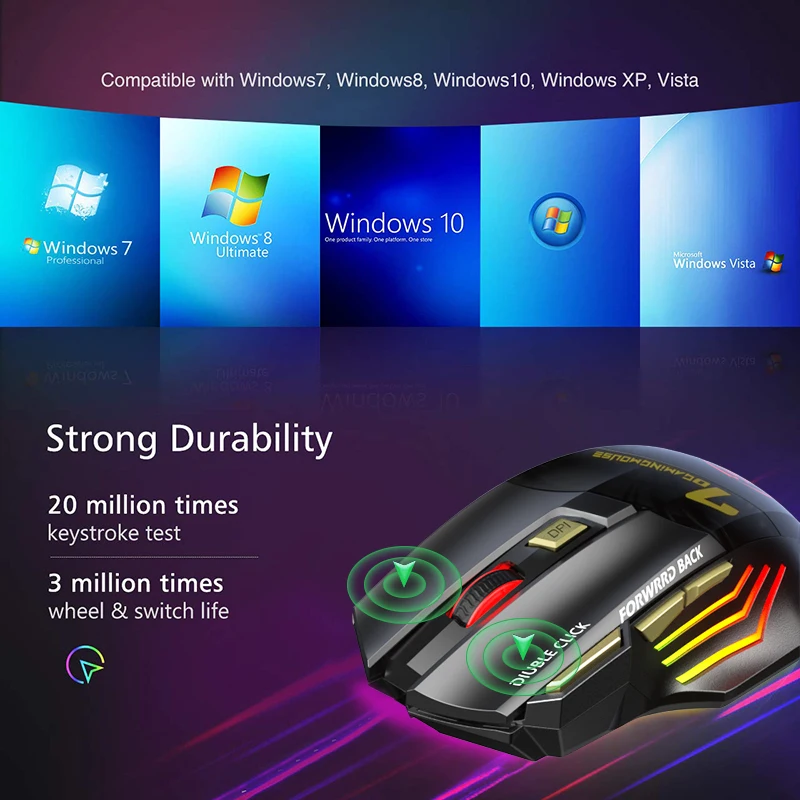 Buttons 4 dpi e 6 botões: mouse bluetooth tem 1600-2400-3200-5500dpi. 7 botões eficientes e 5 nível dpi ajustável que permitem que você controle livremente a velocidade do mouse. Conecta diretamente ao computador portátil do dispositivo bluetooth ou ao computador sem a necessidade de um receptor.